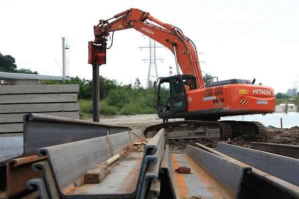 Извлечение шпунтовых ограждений при строительстве спортивного комплекса.