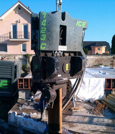 Кроме перечисленных параметров ICE 1423-C обладают высокой амплитудой – самым лучшим показателем среди этого ряда строительной техники. А также у него небольшая высота, что позволяет применять наибольший вылет стрелы, то есть, заглублять опоры значительной длины.